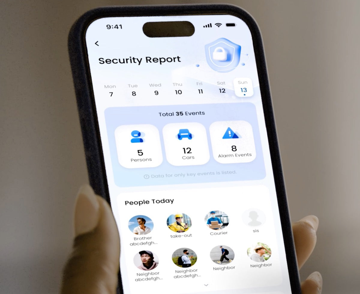 Alle unsere Kameras sind mit einer einzigen, benutzerfreundlichen App verbunden, in der Sie Benachrichtigungen erhalten, Livebilder ansehen und mit nur wenigen Fingertipps aufgezeichnete Aufnahmen abspielen können.