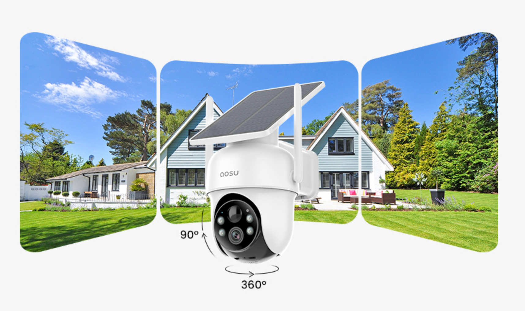 Lokale Aufzeichnung, 360°/90° PTZ-Technologie, Solar+Batteriebetrieben, Einteiliges Design, Kabellos