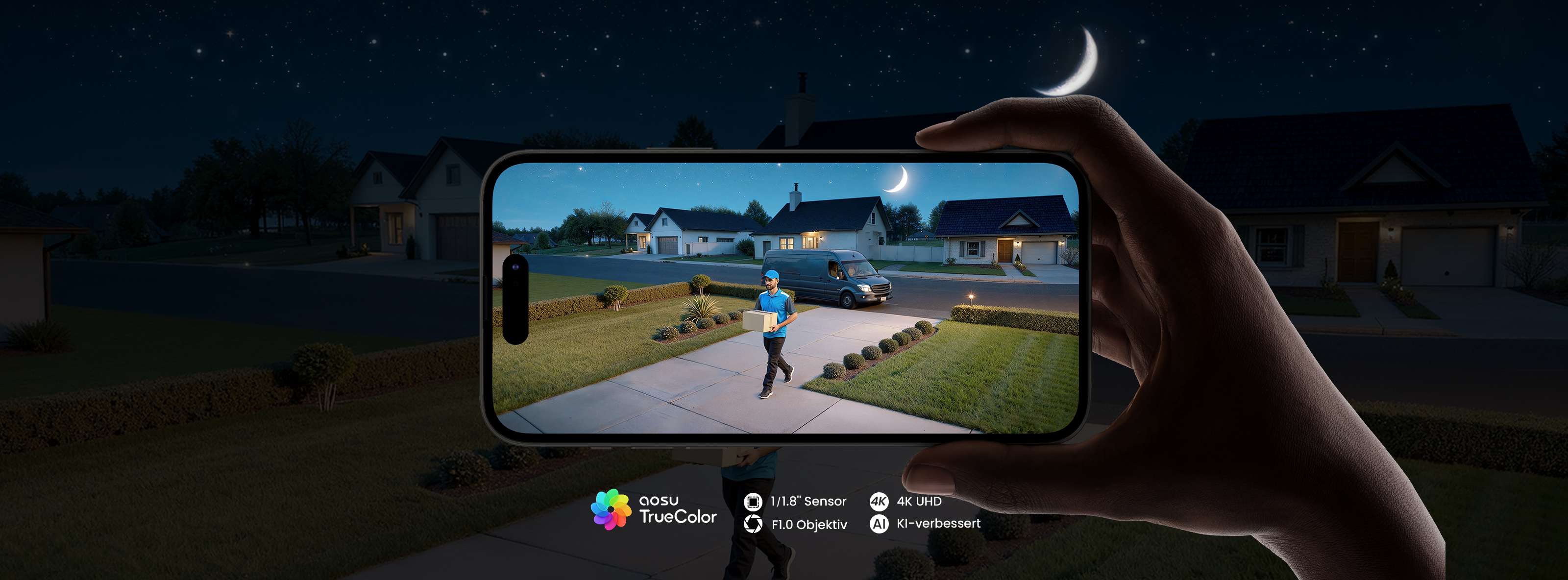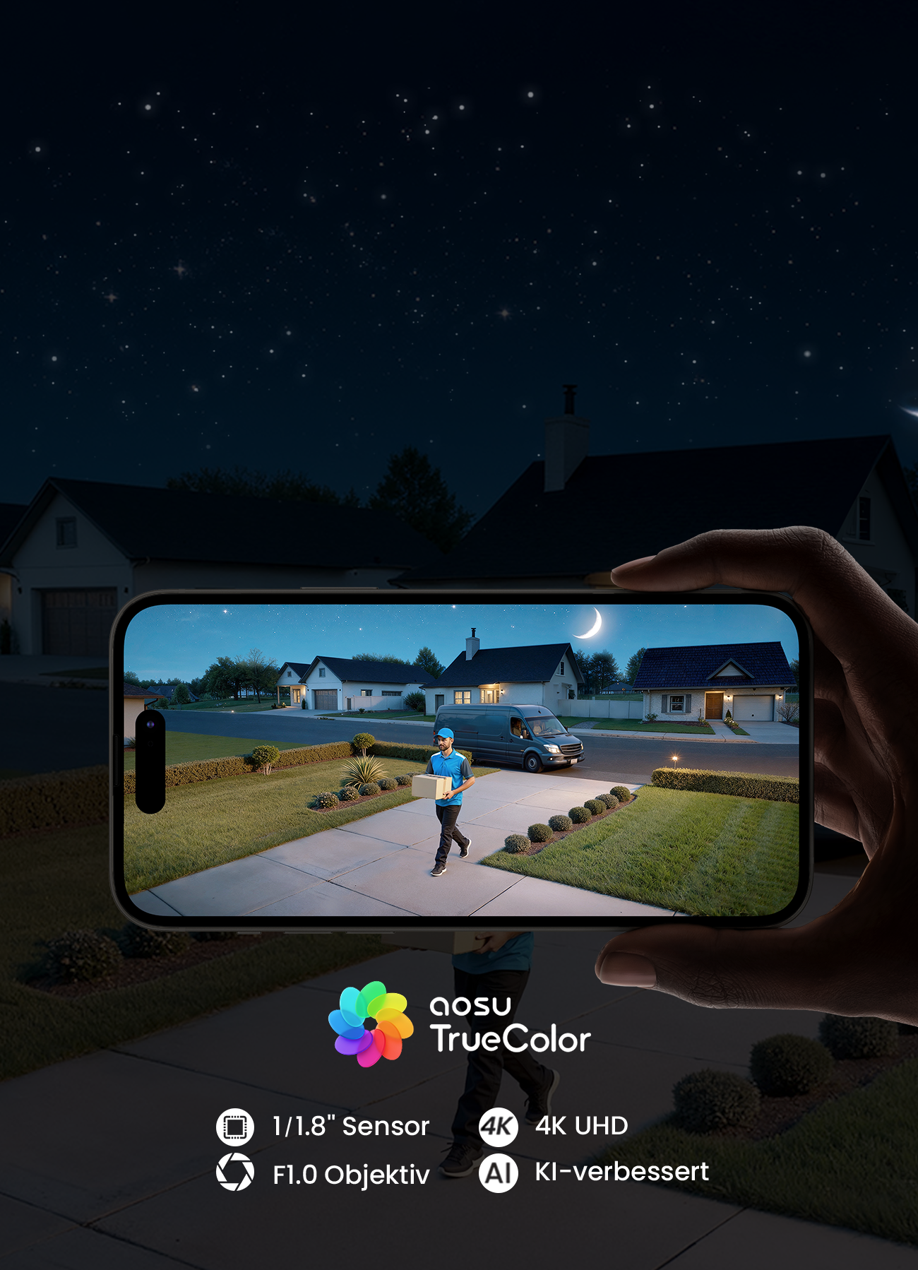 - TrueColor-Nachtsicht: Nutzt die neueste Nachtsichttechnologie, um selbst an mondlosen Nächten klare, farbige Aufnahmen zu liefern – ganz ohne Scheinwerfer, der Nachbarn stören könnte.