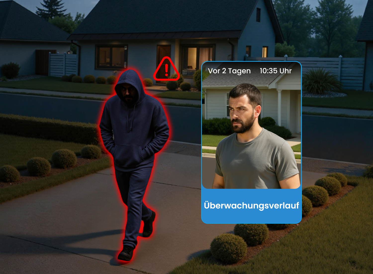 Diese drei Technologien überprüfen sich in Echtzeit gegenseitig, sodass Alarme nur bei echten Bedrohungen ausgelöst werden. Über 90 % nicht bedrohlicher Fehlalarme – wie durch bewegte Blätter, Autolichter oder fliegende Insekten – werden herausgefiltert.
