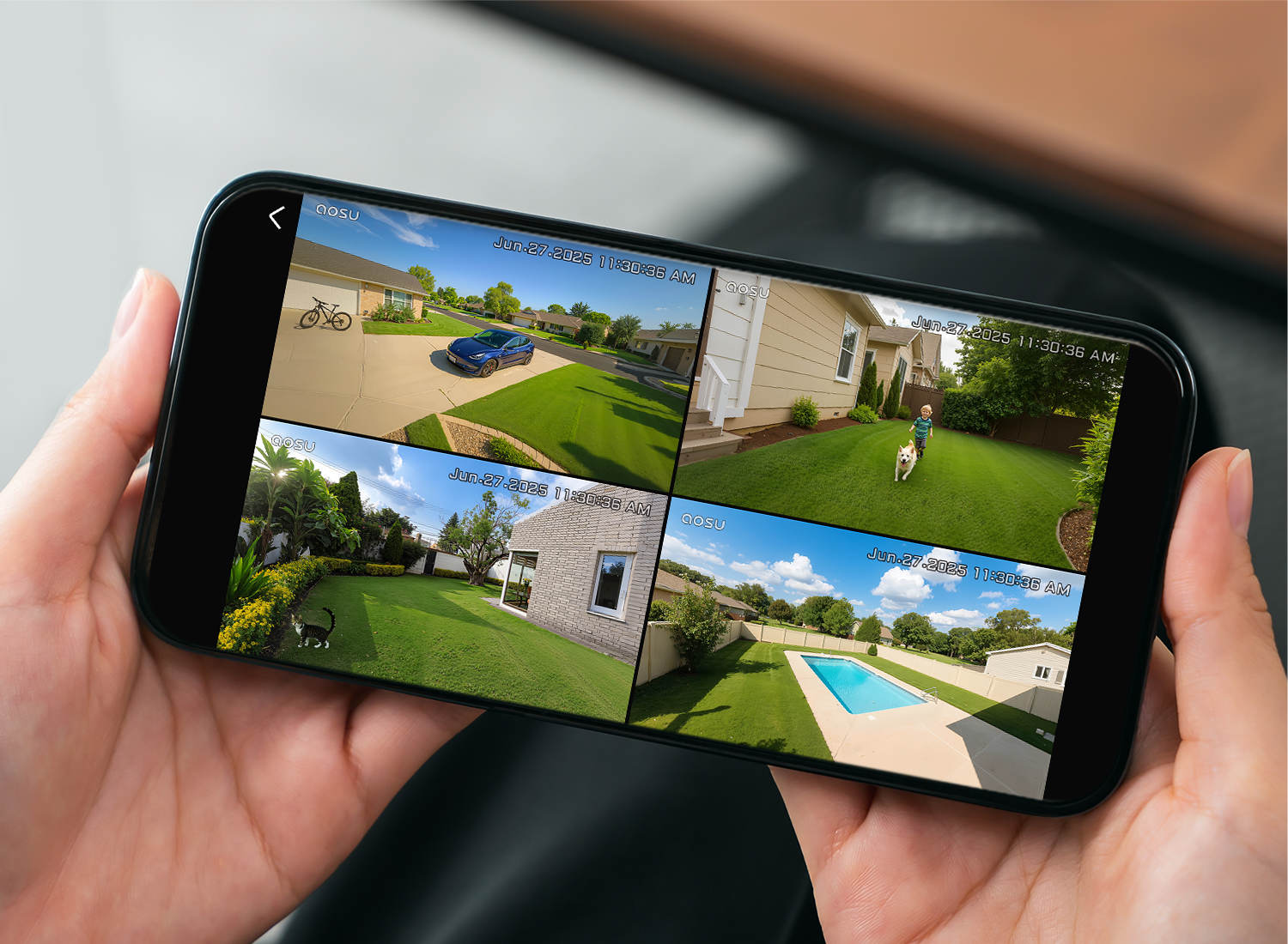 Das AOSU 4-Kamera-Kit mit Basisstation ist ideal für Hauseingänge, Lagerhallen, Garagen, Parkplätze, Haustiere, ältere Menschen und Kinder, Campusgelände und andere Außenbereiche.