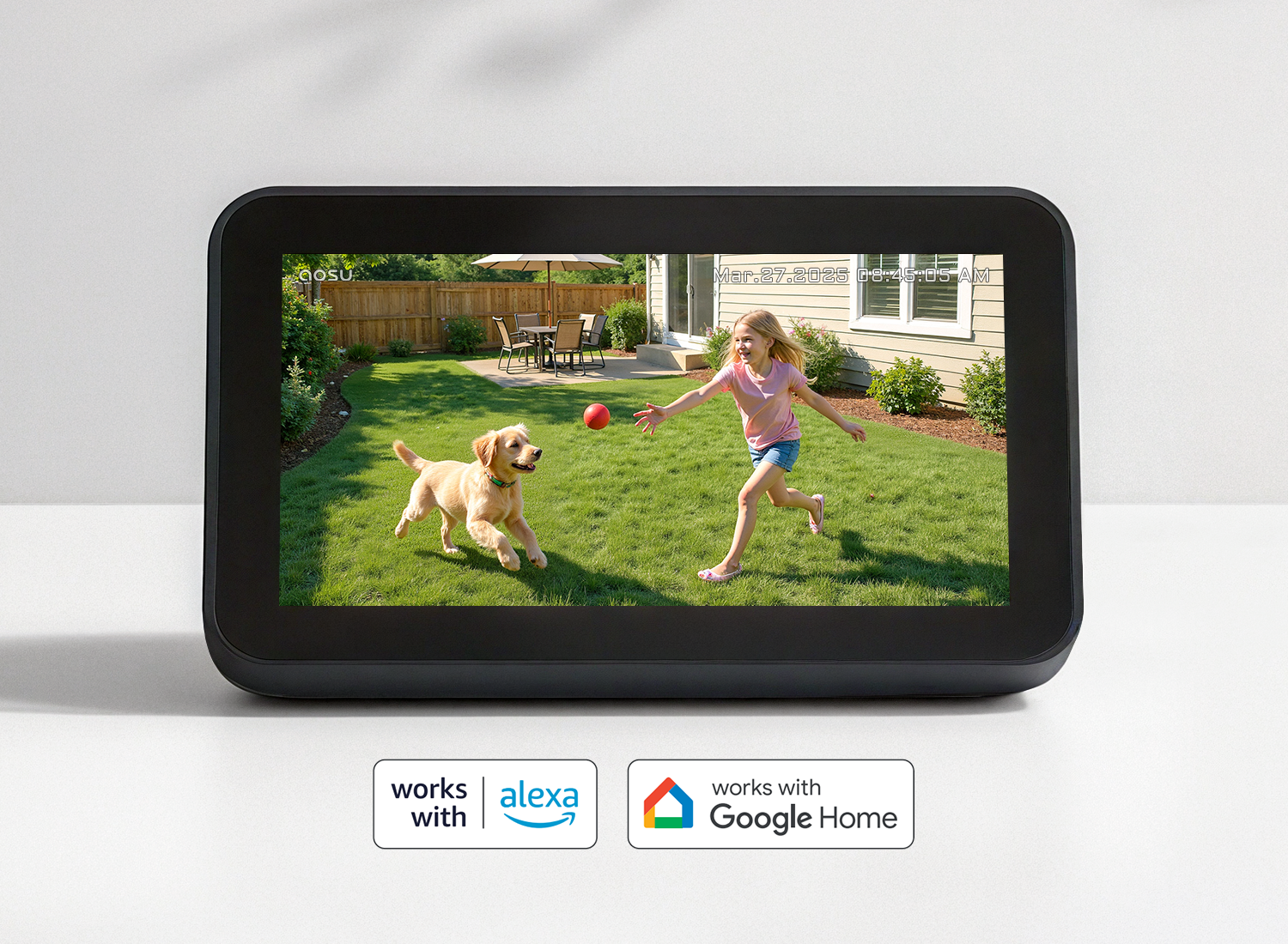 Verbindet sich mit Alexa und Google Assistant, sodass Sie jederzeit nachsehen können, was rund um Ihr Zuhause passiert.