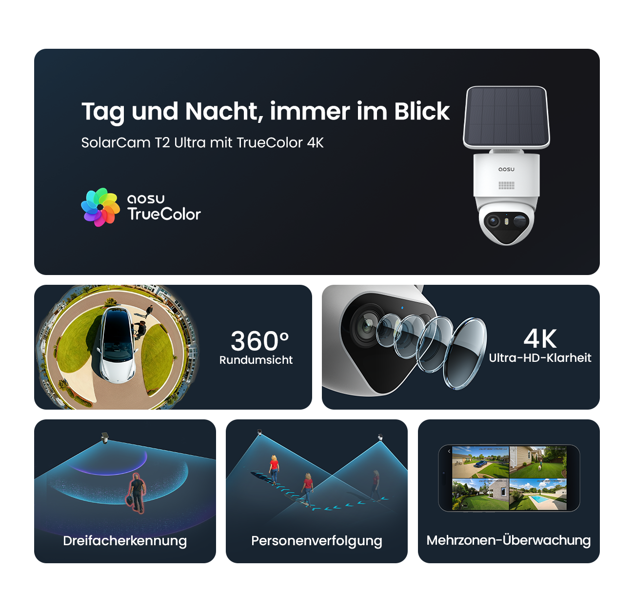 Der T2 Ultra erzielt ein revolutionäres Upgrade in der intelligenten Sicherheit durch seine dreifache Bewegungserkennung und TrueColor-Nachtsicht.