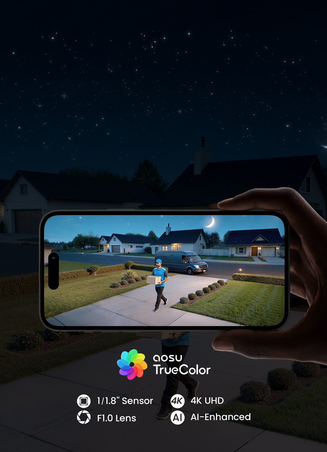 - 【4K UHD & Farbnachtblick: 8MP für Tag und Nacht】 Mit der F/1.0-Blende, dem 1/1.8″-Starlight-Sensor und der 8MP-Auflösung (3840×2160) bietet die Kamera lebendige 24/7-Farbaufnahmen und zwei Nachtmodi: Farb-Nachtsicht (mit Spotlights) für volle Detailtiefe oder Infrarot-Nachtsicht (bis 10m ohne Licht) – Gesichter und Nummernschilder bleiben selbst auf Distanz klar erkennba