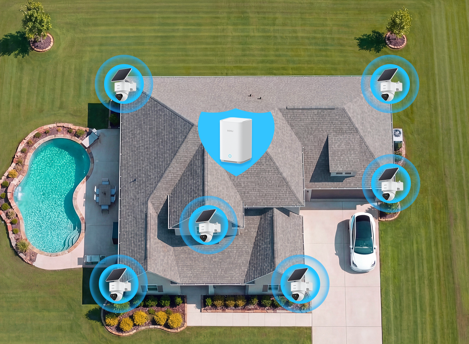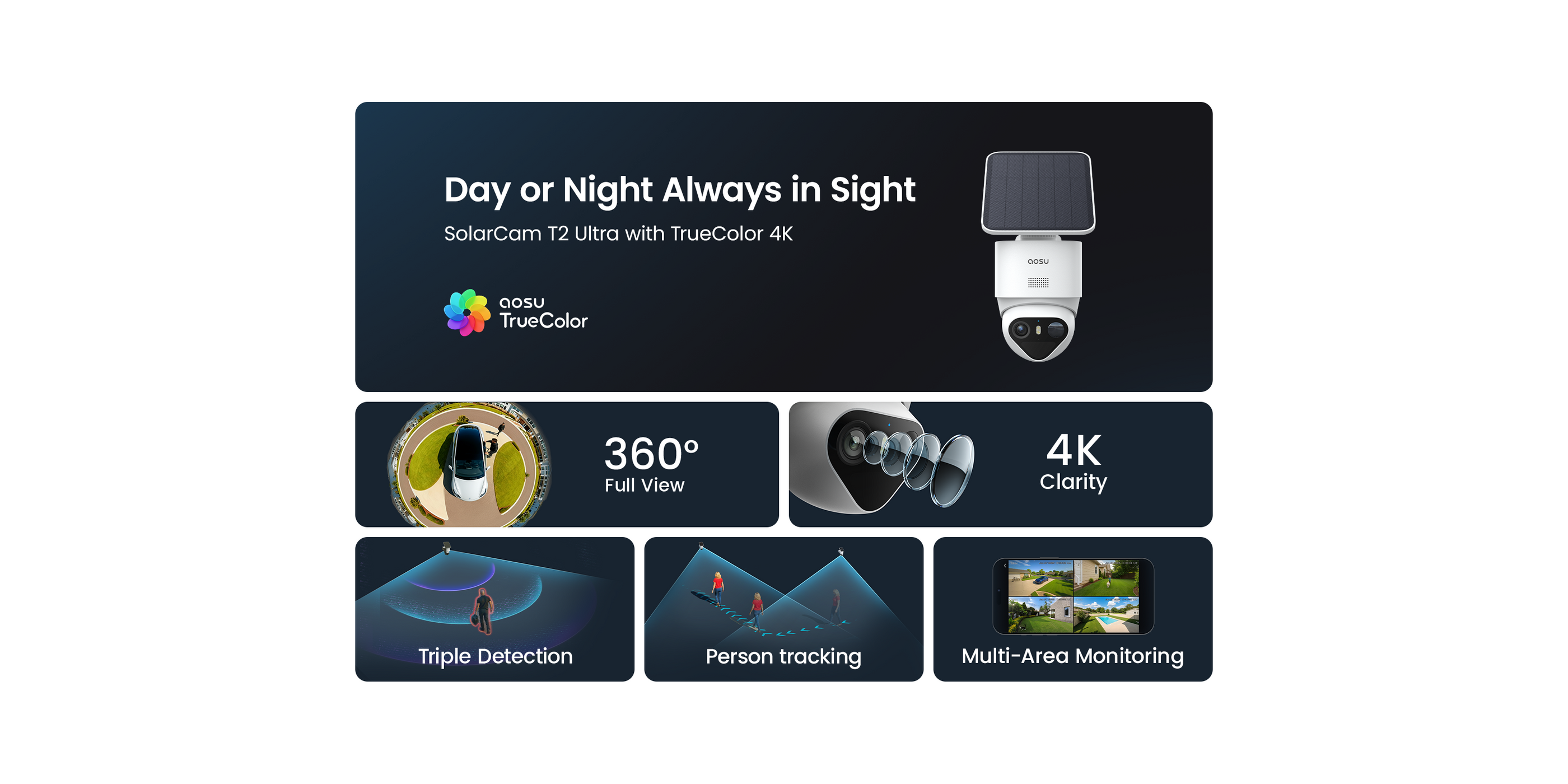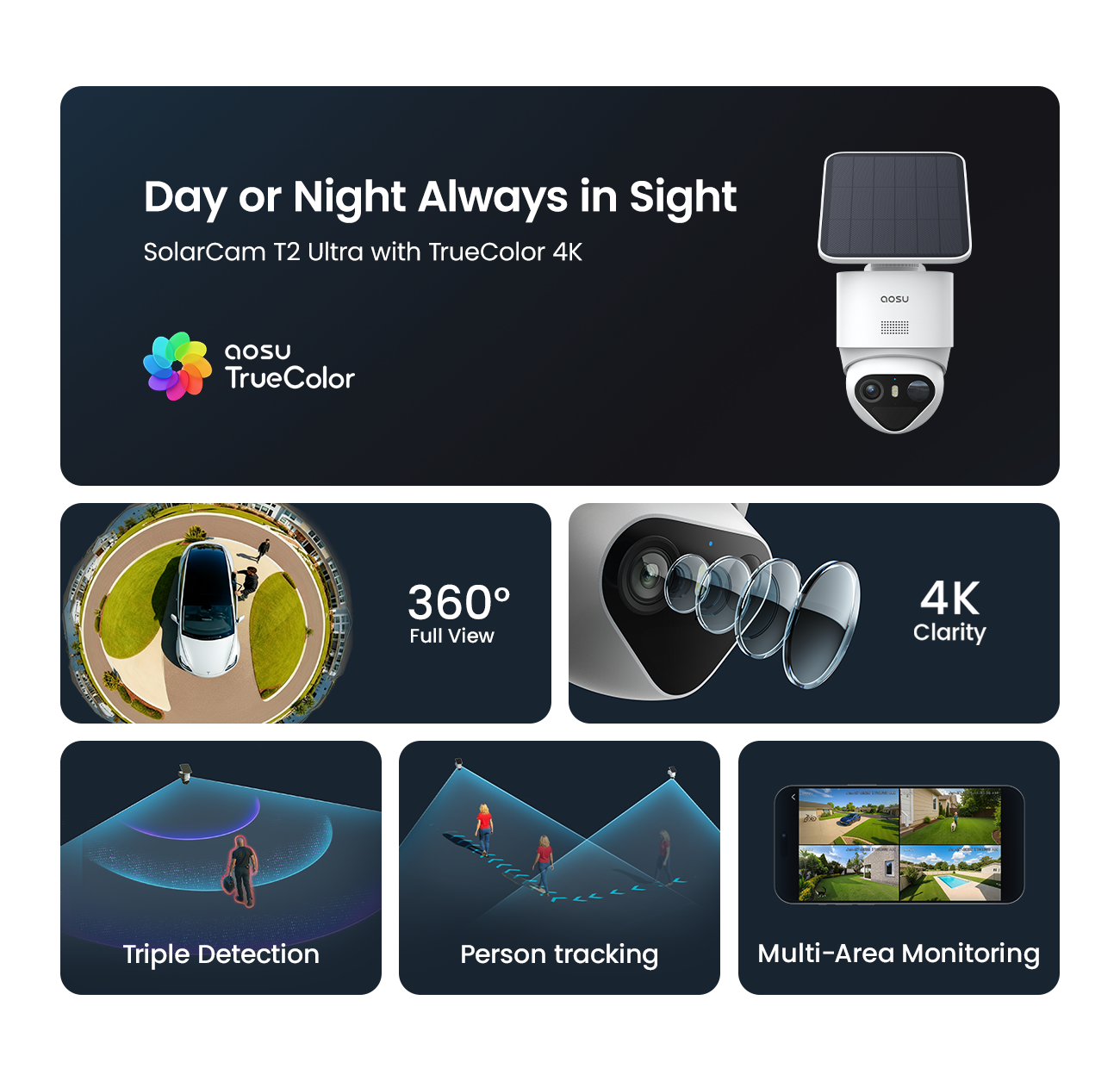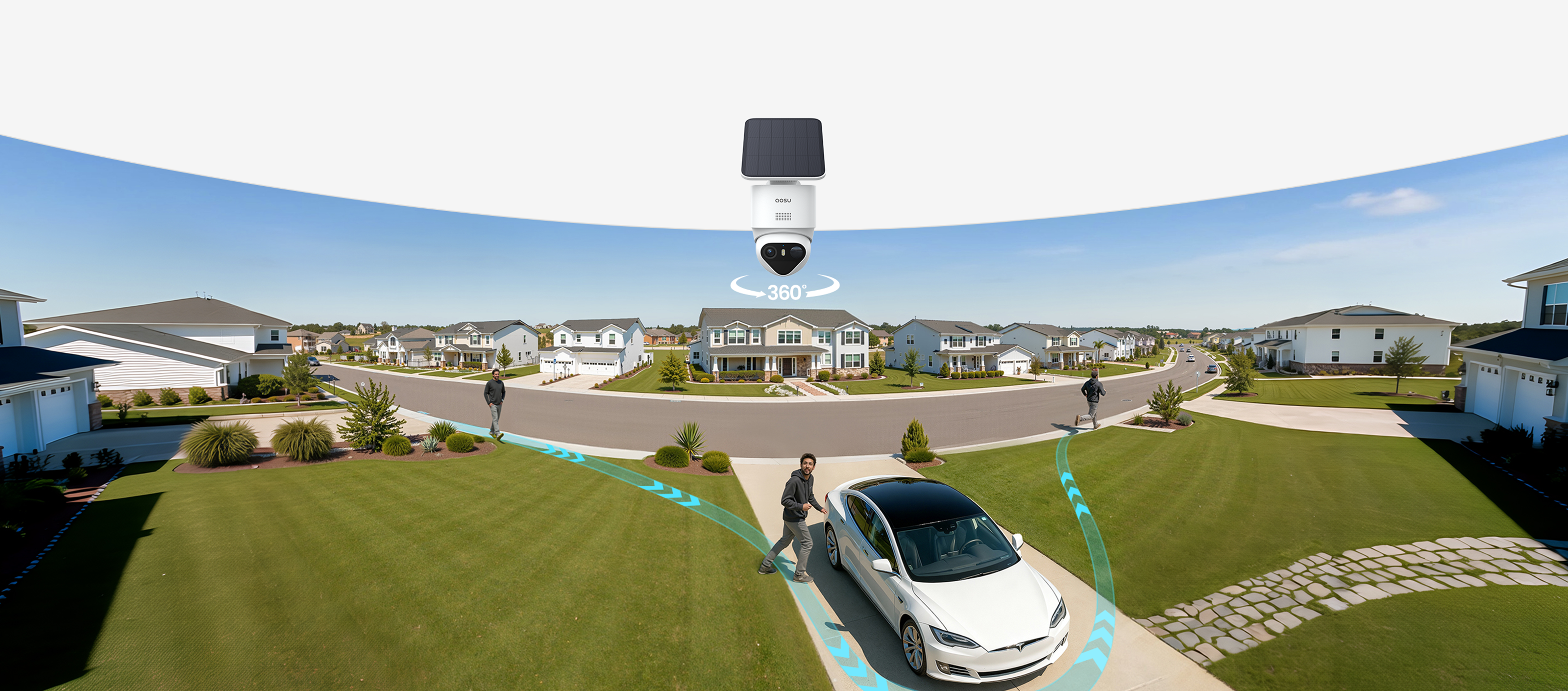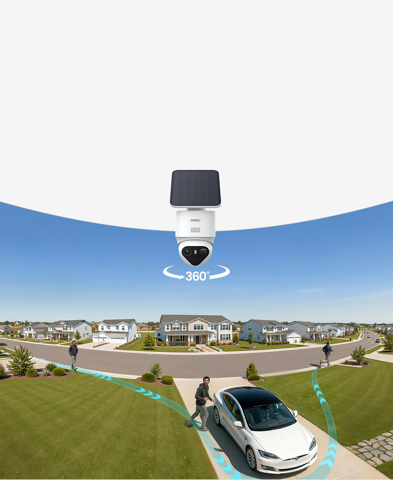 - 【360°-Rundumüberwachung & Automatische Verfolgung für Maximale Sicherheit im Ganzen Haus】 Die 360°-Schwenk-/Neige-Dome-Kamera bietet eine vollständige Rundumüberwachung mit automatischer Echtzeit-Verfolgung – ohne tote Winkel, weder drinnen noch draußen. Dank aosuBase 2.0 unterstützt dieses Solar Kamera Wlan Outdoor System bis zu 6 Kameras und ermöglicht Ihnen so den Aufbau einer skalierbaren Sicherheitslösung für den umfassenden Schutz Ihres Grundstücks.